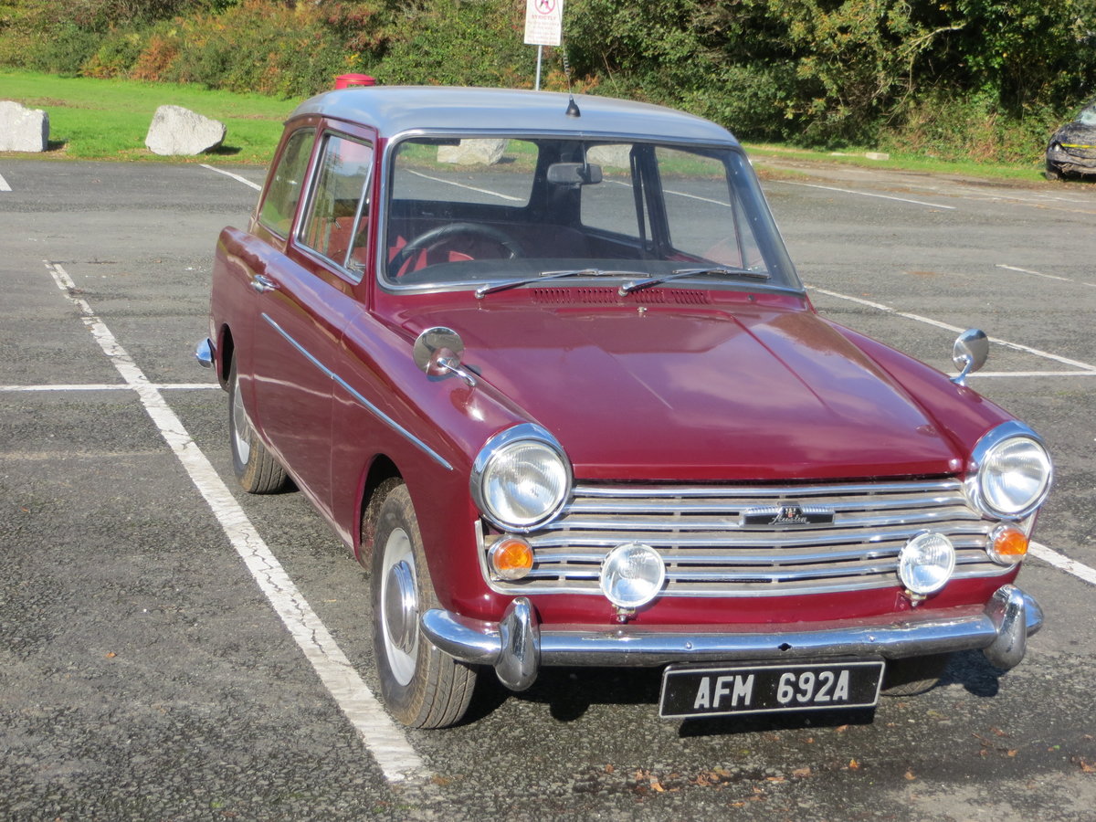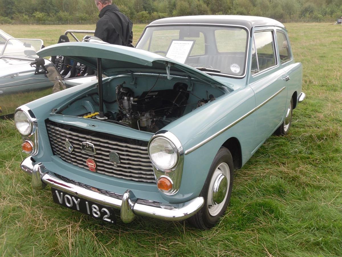 At launch the car shared the 948 cc A-Series straight-4 used in other Austins including its A35 predecessor. The suspension was independent at the front using coil springs with a live axle and semi elliptic leaf springs at the rear. The drum brakes were a hybrid (hydromech) arrangement, hydraulically operated at the front but cable actuated at the rear. The front drums at 8 in (200 mm) were slightly larger than the 7 in (180 mm) rears. Cam and peg steering was fitted.