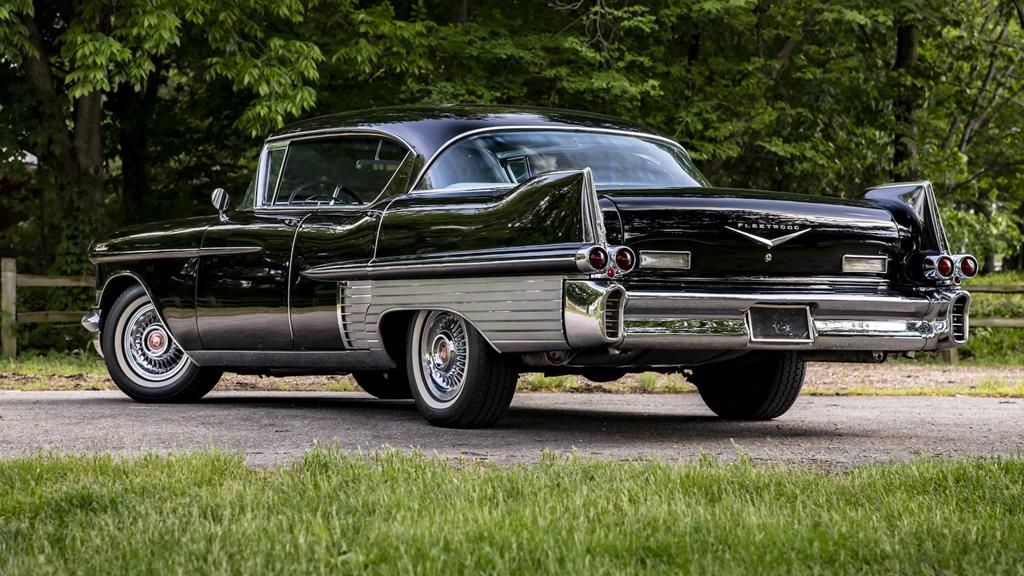 The chrome fender louvers, a Sixty Special trademark since 1942, were gone in favor of a giant ribbed metallic panel that occupied the entire lower half of the rear fender. The Sixty Special script was located on the lower half of the front fender, and was relocated to the top of the rear fin for 1958, and the word "Fleetwood" was spelled out in block lettering across the trunklid.
