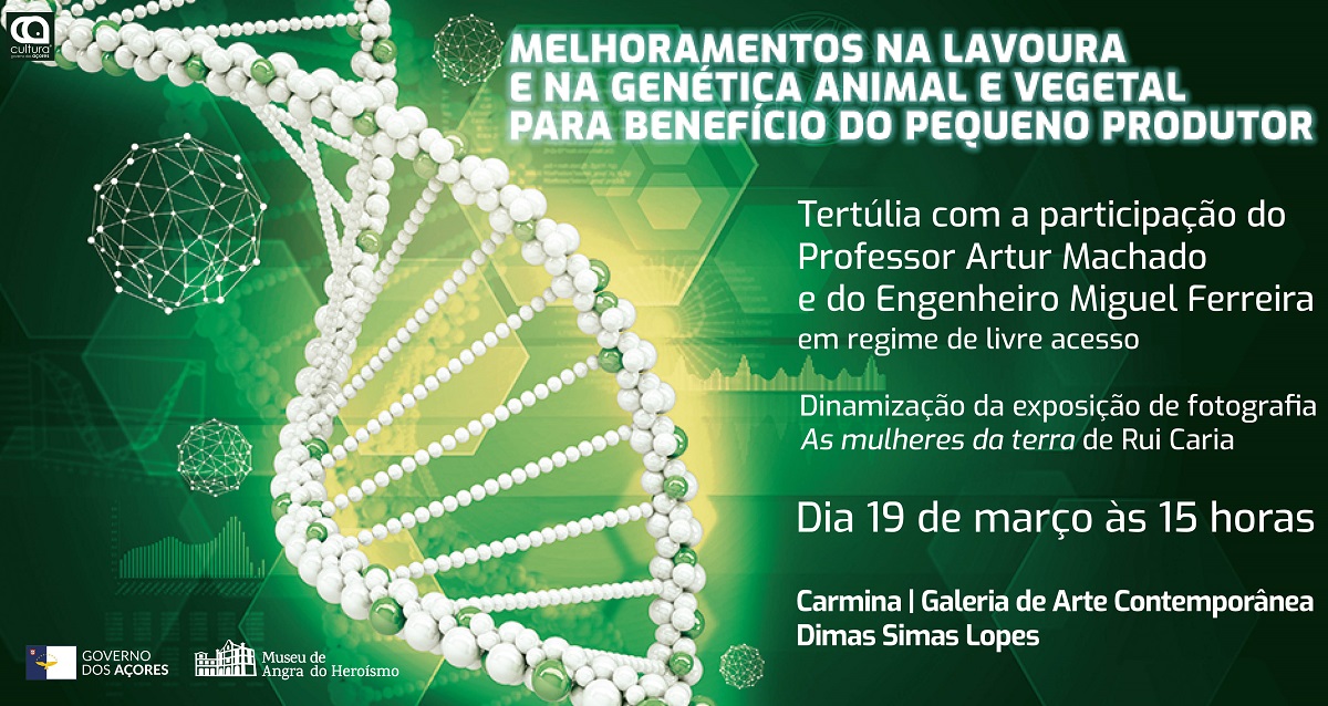 A Secretaria Regional da Cultura, da Ciência e Transição Digital, por via da Direção Regional da Cultura, através do Museu de Angra do Heroísmo, promove no próximo sábado, dia 19 de março, às 15h00, na Carmina – Galeria de Arte Contemporânea Dimas Simas Lopes, a realização da tertúlia “Melhoramentos na Lavoura e na Genética Animal e Vegetal para Benefício do Pequeno Produtor”, com a participarão de Artur Machado e Miguel Ferreira.