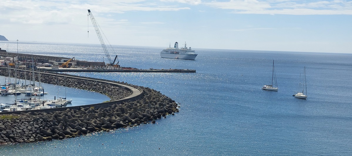 O Navio, passou o dia ao largo do Porto de Pipas. O transfer dos passageiros para terra foi feito à moda antiga em pequenas embarcações.