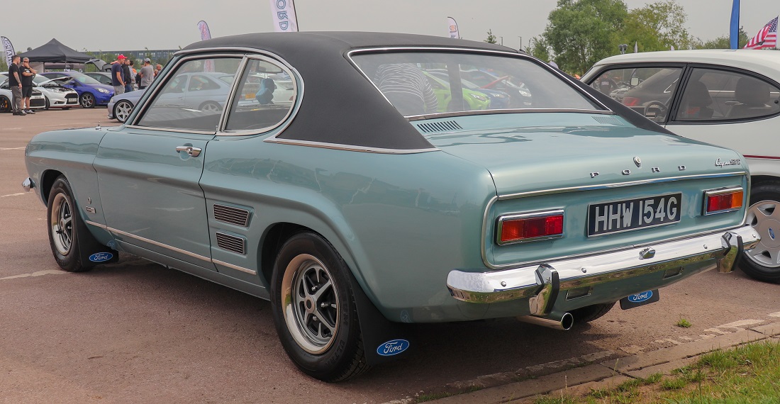 The first Ford Special, was the Capri Vista Orange Special. The Capri Special was launched in November 1971 and was based on the 1600 GT, and 2000 GT models. It was only available in vista orange and was optional dealer fitted with a Ford Rally Sport boot mounted spoiler and rear window slats – a direct link to the Mustang. The Special also had some additional standard extras such as a push-button radio, fabric seat upholstery, inertia reel seat belts, heated rear screen and black vinyl roof.[11] There were only 1200 Vista Orange Capri Specials made. One of the last limited editions of the original Mk I, was a version that came in either metallic green or black with red interior and featured some additional extras, such as cloth inserts in the seats, hazard lights, map reading light, opening rear windows, vinyl roof and for the first time a bonnet bulge was fitted to the sub-3.0-litre models. This special edition was only available with a 1.6 or 2.0 engines and had the full title of GTXLR Special.
