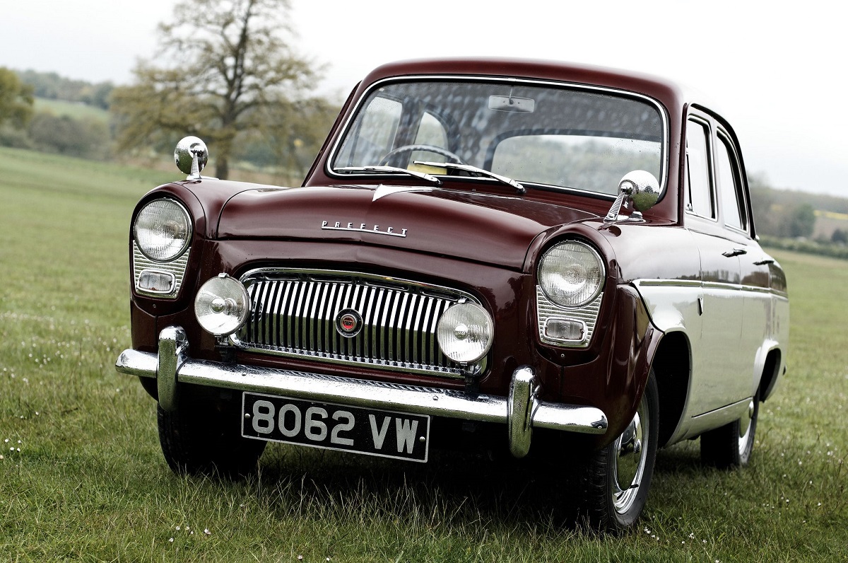 The Ford Prefect is a line of British cars which was produced by Ford UK between 1938 and 1961 as an upmarket version of the Ford Popular and Ford Anglia small family cars. It was introduced in October 1938 and remained in production until 1941. Returning to the market in 1945, it was offered until 1961.