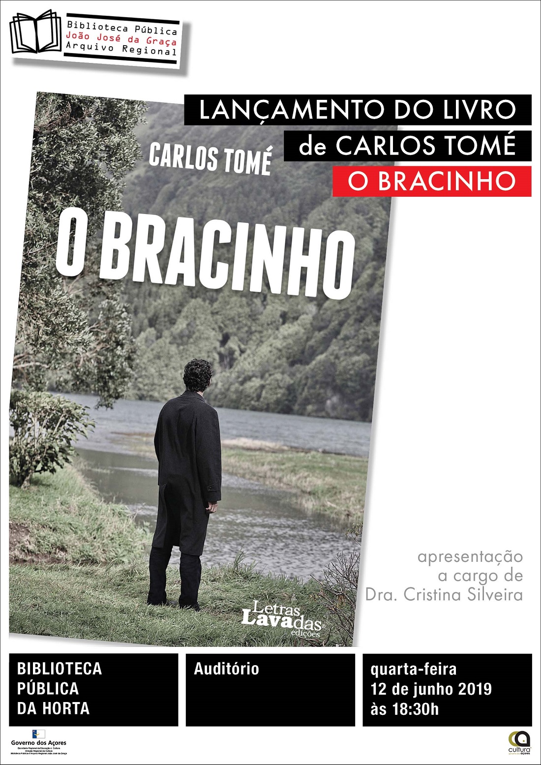 A Direção Regional da Cultura, através da Biblioteca Pública e Arquivo Regional João José da Graça, na Horta, promove a 12 de junho, em parceria com a editora Letras Lavadas, o lançamento do livro "O Bracinho", da autoria de Carlos Tomé.