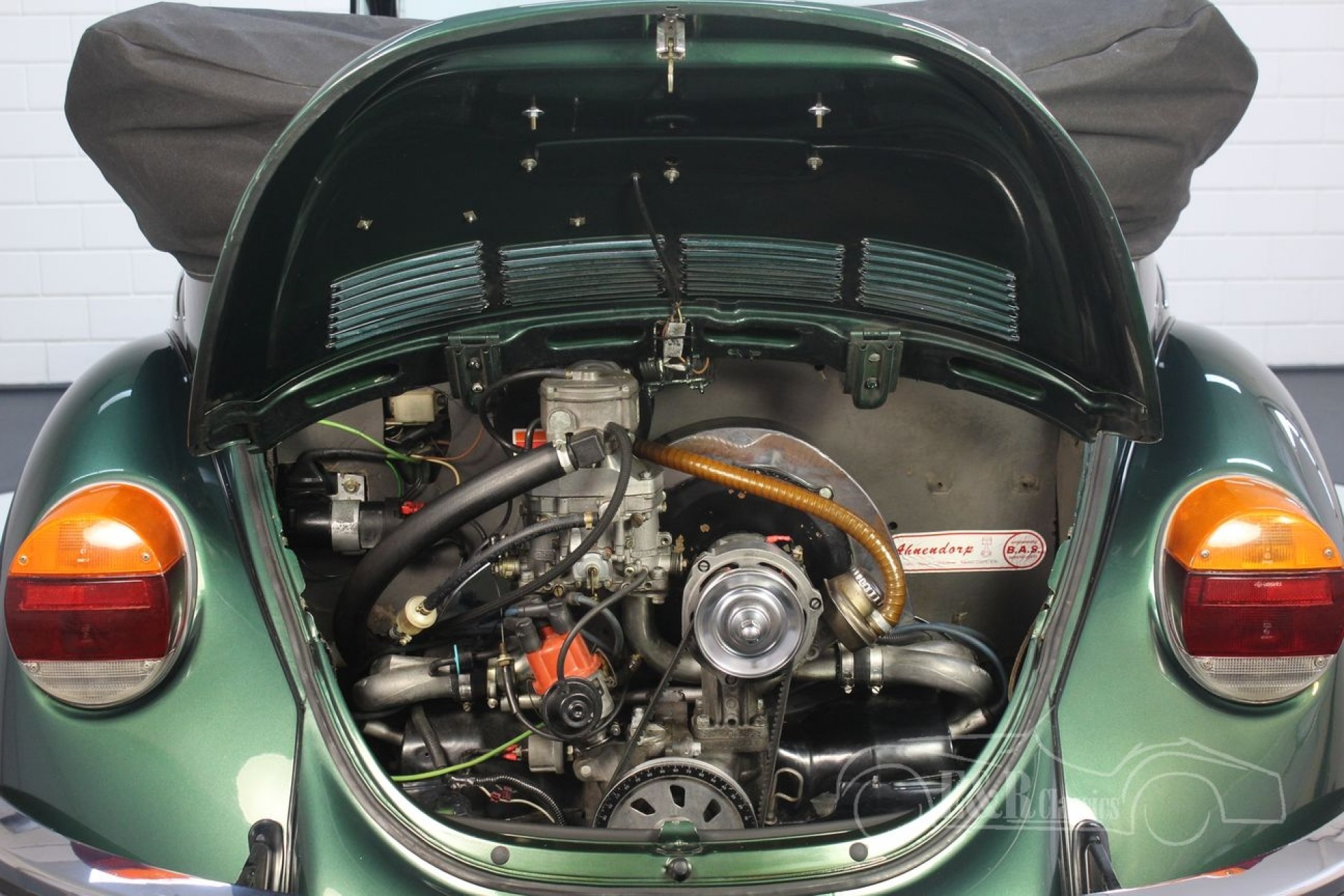 Karmann, como Hebmüller, usou uma peça de canal semelhante a uma caixa ao longo da parte inferior do corpo para fornecer suporte estrutural necessário para o conversível. Na construção da capota conversível, Karmann usou um forte material de vinil para o exterior e um forro de teto mais macio no interior. Entre os dois, havia um acolchoado de uma polegada de espessura feito originalmente de borracha e crina de cavalo, e depois de espuma. A fim de permitir espaço para os passageiros do banco de trás, o topo dobrado para trás como o topo de um carrinho de bebê em torno da seção traseira do corpo. Como as venezianas que forneciam ar de resfriamento para o motor não estavam mais presentes no conversível, os slots foram cortados no decklid. Estes foram verticais até 1957, e depois ficaram horizontais para o restante da produção. Os carros eram mais caros que seus primos sedan, mas essencialmente eram feitos à mão pela empresa Karmann. Eles geralmente eram fornecidos com muitos recursos que eram opcionais nos sedans, como proteções de cascalho e melhores rádios.