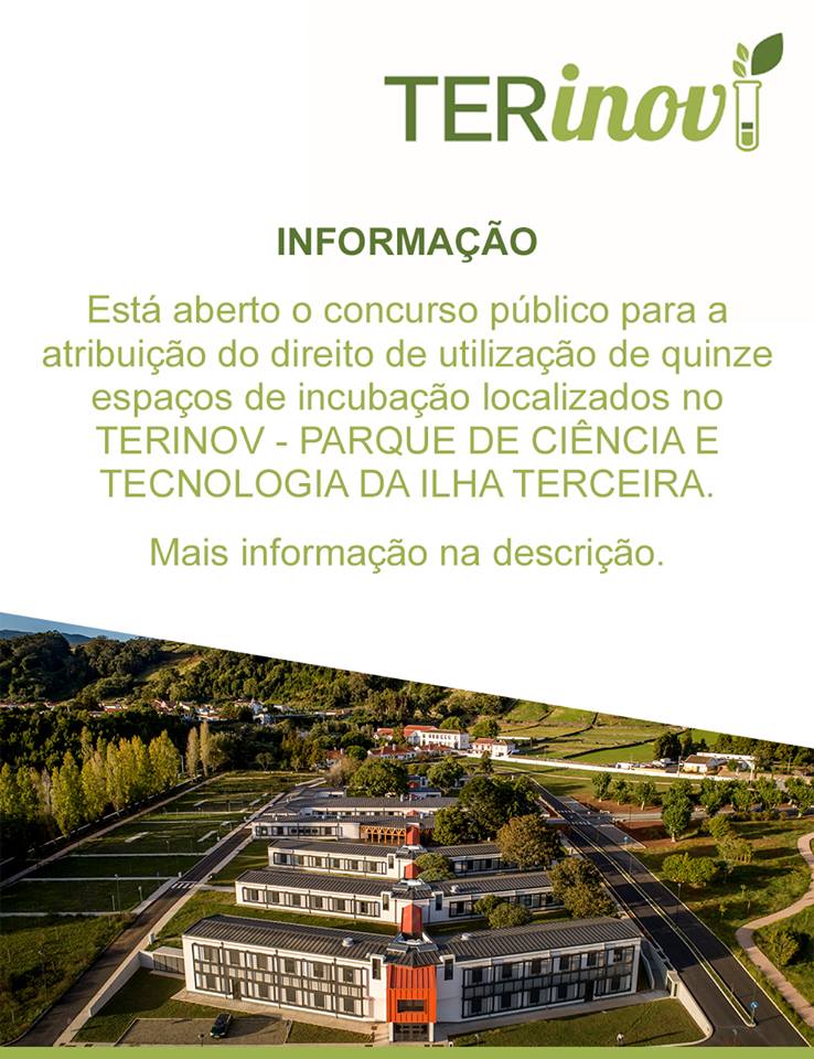 Neste sentido, faz público que, pelo prazo de sessenta dias (60) a contar da data da publicação do presente aviso no Jornal Oficial da Região Autónoma dos Açores, se encontra aberto o concurso público para a atribuição do direito de utilização de quinze (15) espaços de incubação localizados no TERINOV - PARQUE DE CIÊNCIA E TECNOLOGIA DA ILHA TERCEIRA.