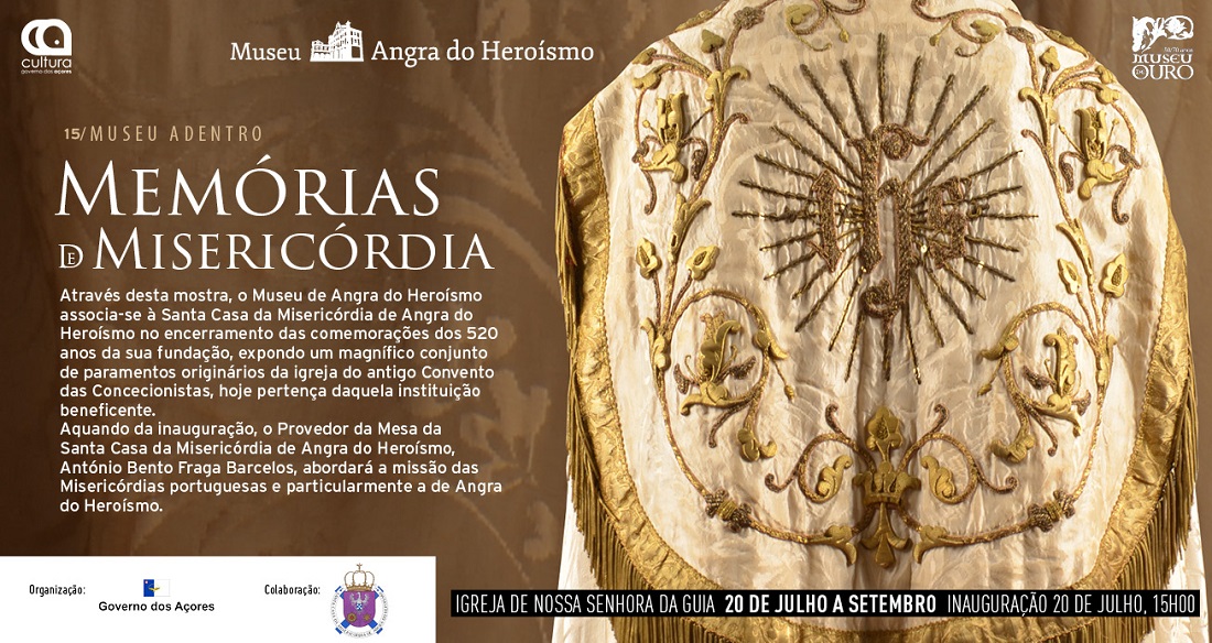 A Direção Regional da Cultura, através do Museu de Angra do Heroísmo (MAH), inaugura no sábado, dia 20 de julho, pelas 15h00, a 15.ª edição da rubrica Museu Adentro, Memórias de Misericórdia, no âmbito da qual estará exposto até setembro, na Igreja de Nossa Senhora da Guia, um magnífico conjunto de paramentos originários da igreja do antigo Convento das Concecionistas, hoje pertença da Santa Casa da Misericórdia de Angra do Heroísmo.