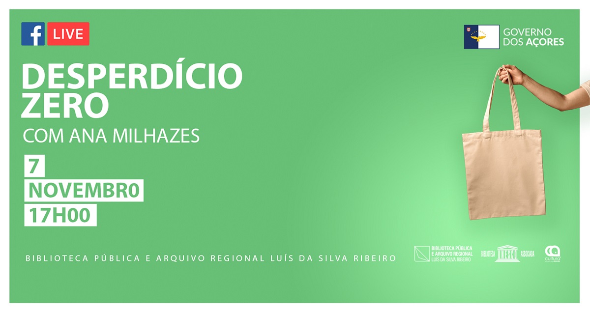 A Direção Regional da Cultura, através da Biblioteca Pública e Arquivo Regional Luís da Silva Ribeiro, em Angra do Heroísmo, promove sábado, 7 de novembro, uma vídeo-palestra sobre “Desperdício Zero”, com Ana Milhazes.