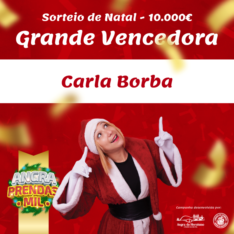 Carla Borba foi a vencedora do prémio de 10 mil euros do sorteio levado a cabo pela Câmara Municipal de Angra do Heroísmo. O sorteio de 1o mil euros em dinheiro vivo destinava-se aos que efecturam as suas compras de Natal nas lojas do comércio tradicional de Angra do Heroísmo.