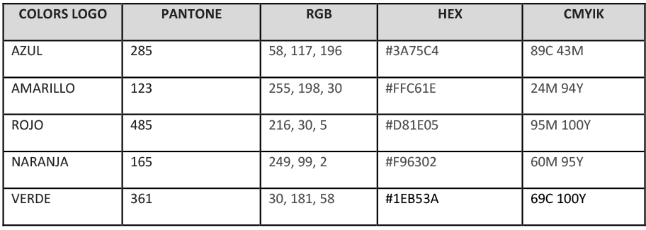 o logótipo deverá conter as 5 cores presentes no logótipo da Associação Internacional de Cidades Educadoras (AICE), tal como mostra o quadro abaixo;