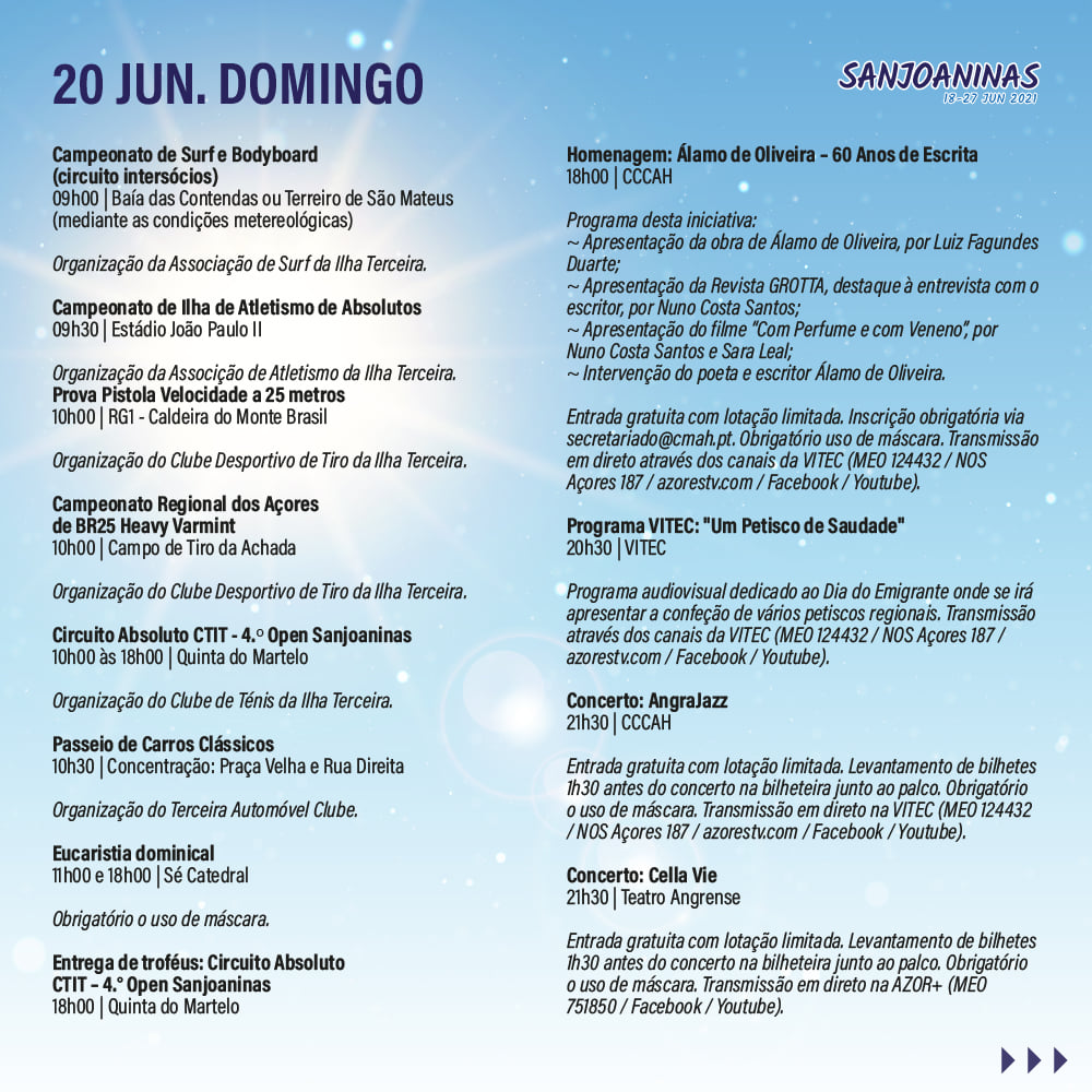 Consulte aqui o programa das Sanjoaninas 2021 para hoje 20 Junho