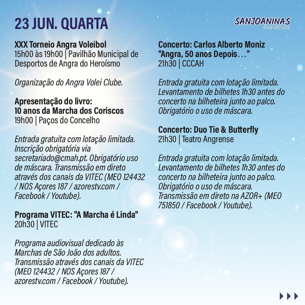 Consulte aqui abaixo o programa para hoje, 23 junho, das Sanjoaninas.