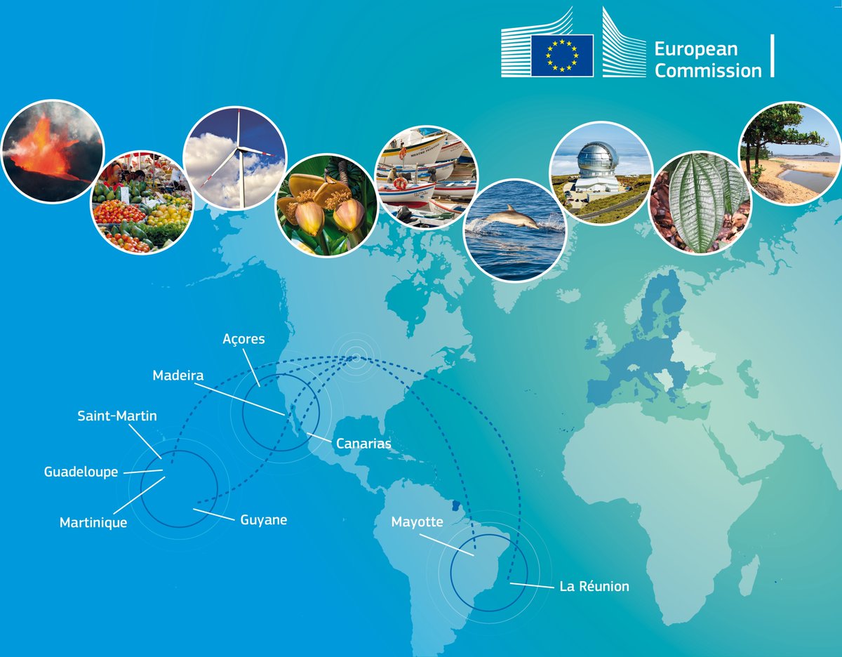A UE inclui nove RUP: os Açores, a Madeira e a Guiana Francesa, Guadalupe, Martinica, Maiote, Reunião e São Martinho (França), e ilhas Canárias (Espanha).